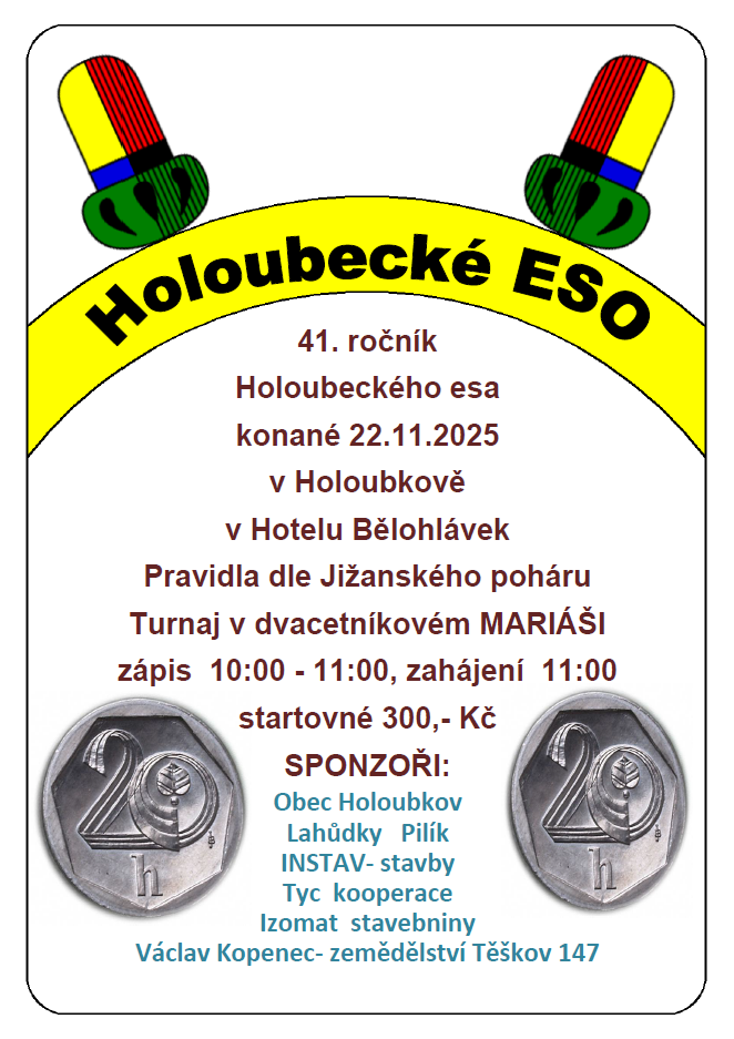 Srdečně zveme všechny příznivce karetních her na turnaj v dvacetníkovém mariáši, pravidla dle jižanského poháru.